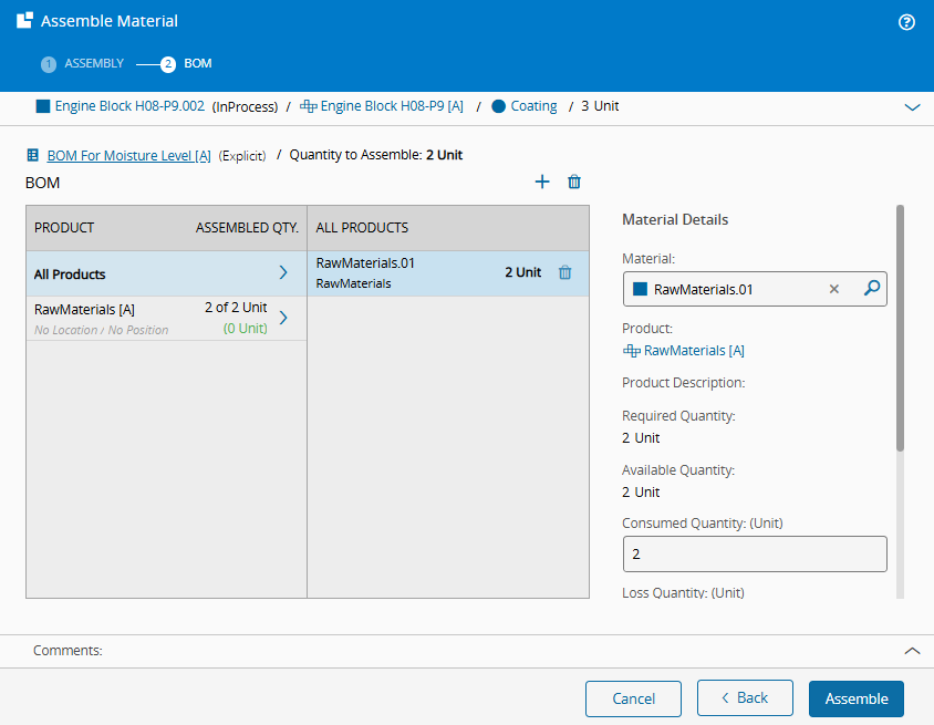 RawMaterials.01is available in the assemble operation.