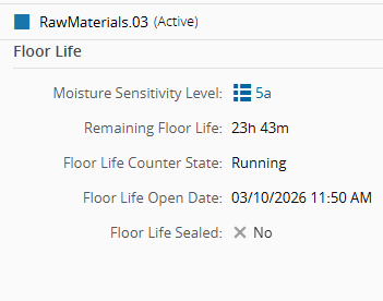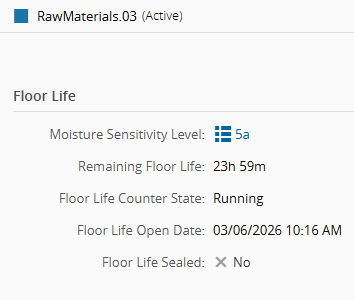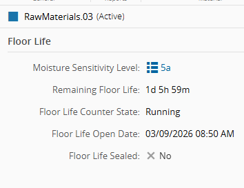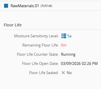 - Floor Life Safe - determines whether the remaining floor life is paused while the material is stored.