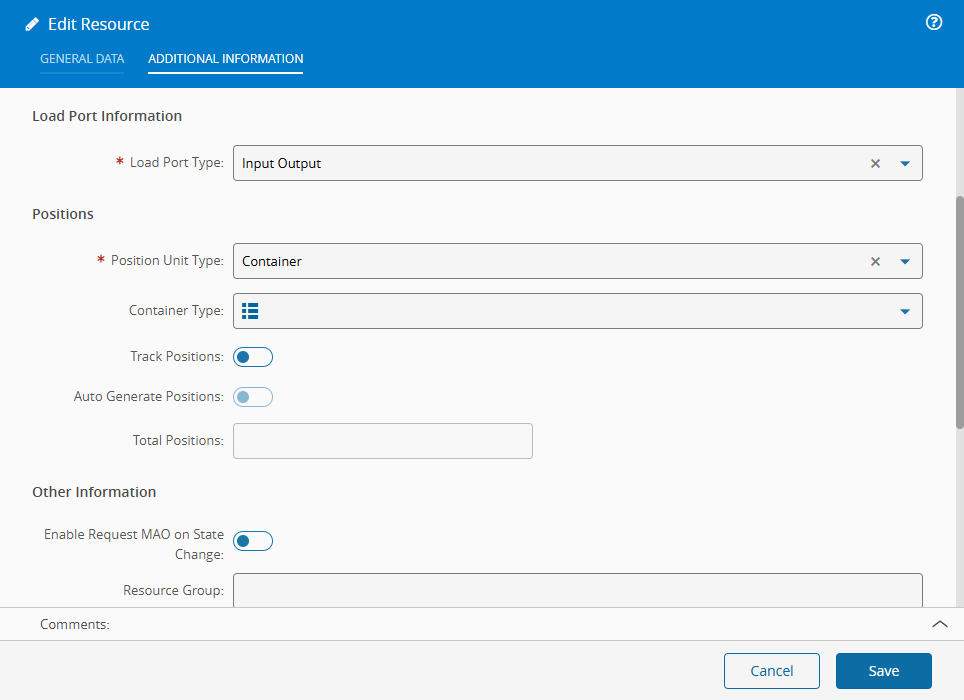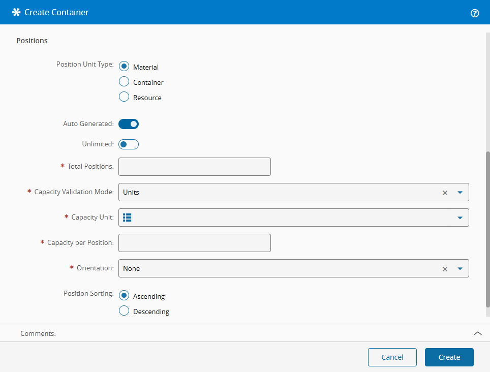 - Position Unit Type — defines whether the Container holds Materials, Containers, or Resources