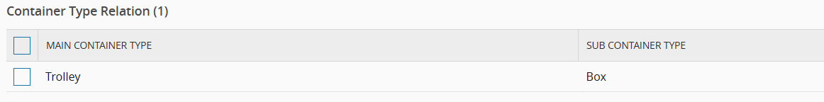 For Container of Containers, define the relationship between the container and sub-container in the Container Type Relation Generic Table.