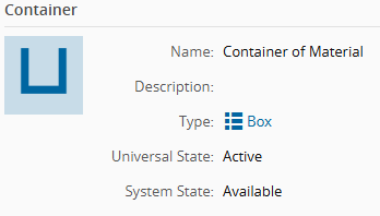 A Container is an object of the Container entity that can hold Materials, Resources, or other Containers.