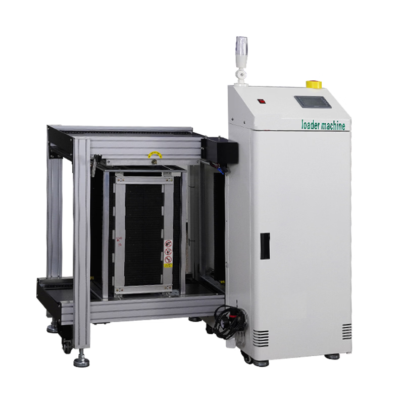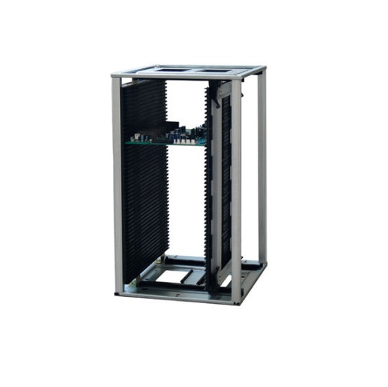 In SMT lines, loader and unloader machines handle magazines of electronic boards.