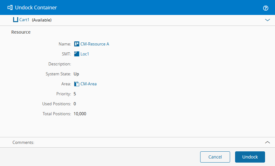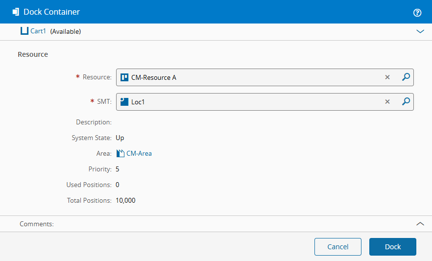 When docking a Container of Resources (for example feeder carts), the system automatically considers the Resources as consumable feeds in the docking Resource.