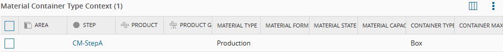 The Material Container Type Context Smart Table defines restrictions for container usage.