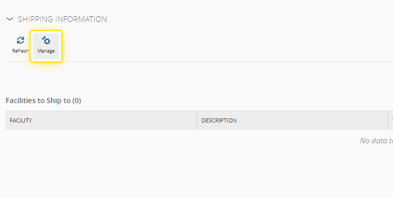For more information, see Manage Shipping Facilities - Critical Manufacturing Documentation Portal ⧉