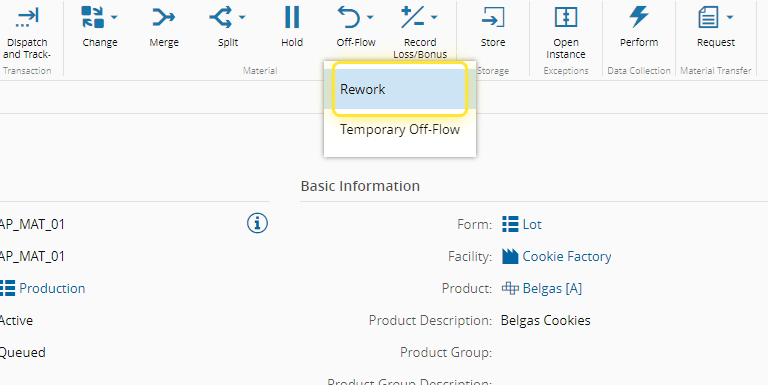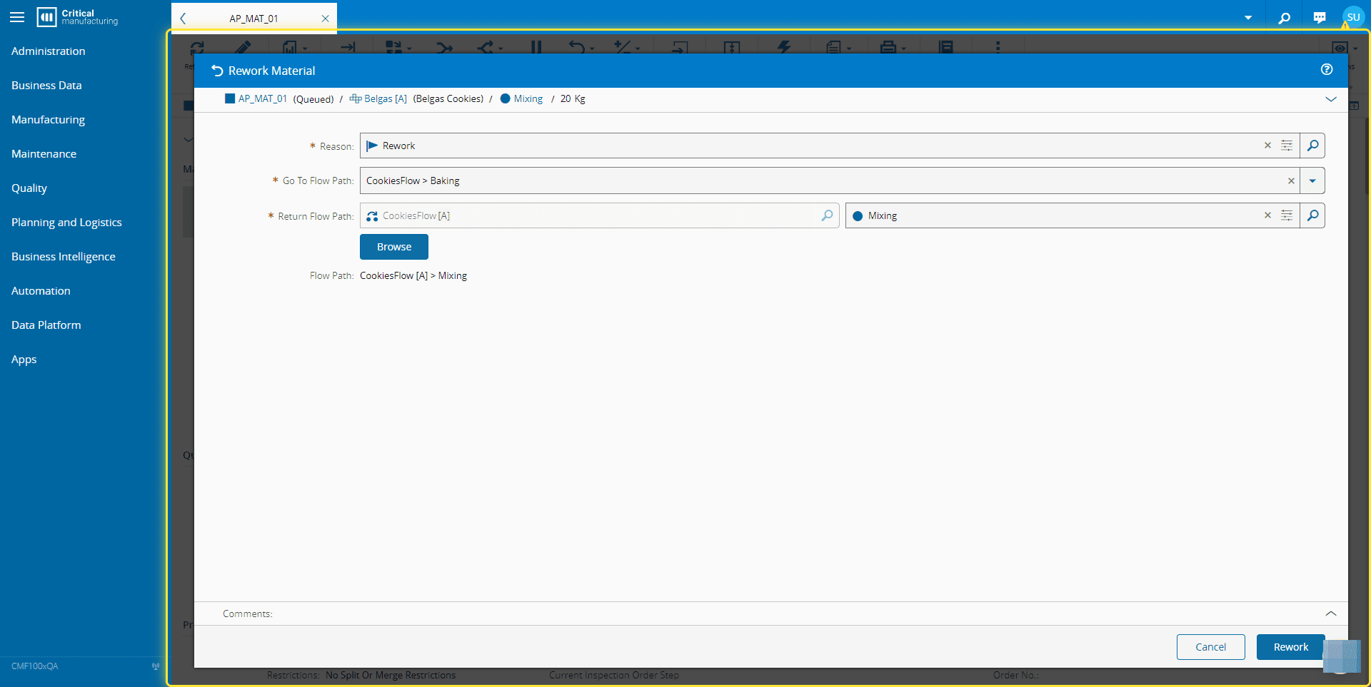 For more information, see Rework Material - Critical Manufacturing Documentation Portal ⧉