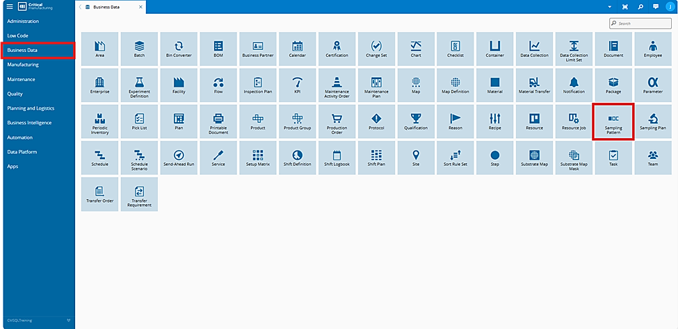 In the Business Data section, select the Sampling Pattern entity.