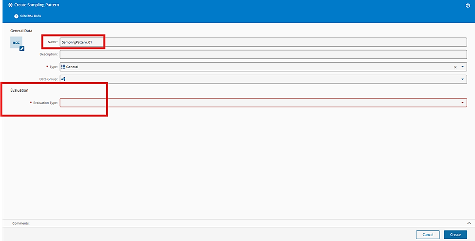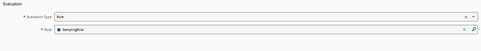 In Evaluation, select an Evaluation Type that matches the purpose of the Sampling Pattern in the real use case. The available options are Manual, Rule, and System, and each option determines how the Sampling Pattern is executed. The differences between these Evaluation Types are explained in the sections below.