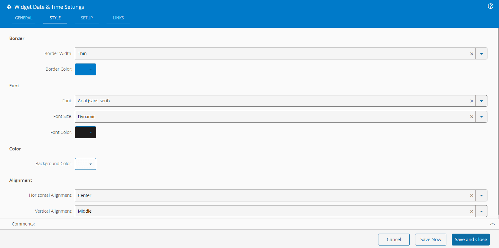 • Font Size - Set the size of the text. Options include Extra Small, Small, Normal, Large, Extra Large, and Dynamic (which adjusts based on the widget's size).