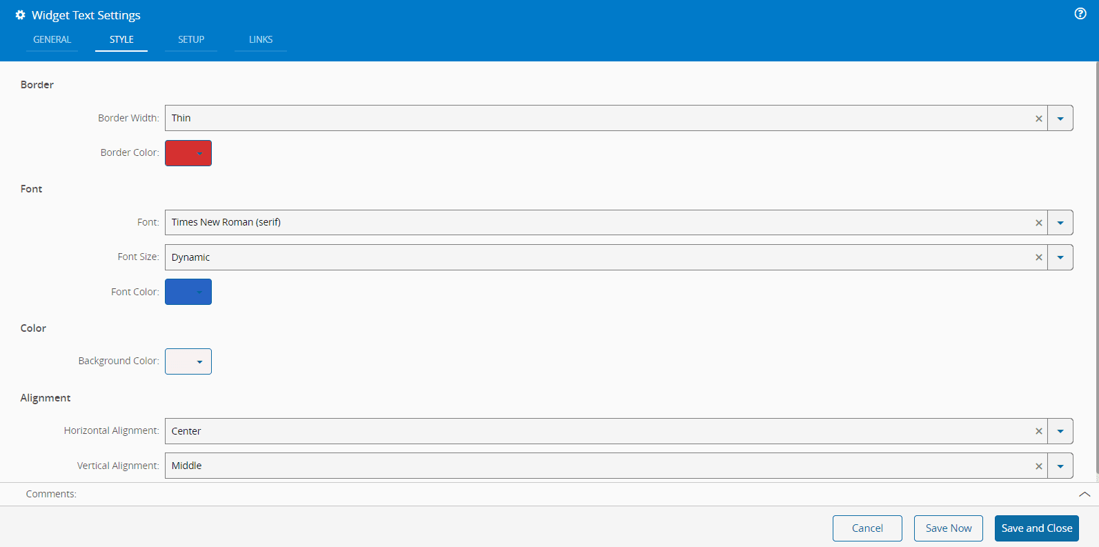 - Vertical Alignment - Align the text vertically within the widget. Options include Middle, Top, and Bottom.