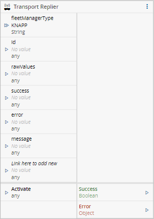 The task Transport Replier is a Task that performs fleet management (AGV) through the message bus. Receives data from the fleet managing driver and sends the reply to the Requester.