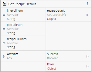 This task returns the Recipe Details from a given Recipe. Outputs an object with Panel/SubPanel/ComponentPlacement information.
