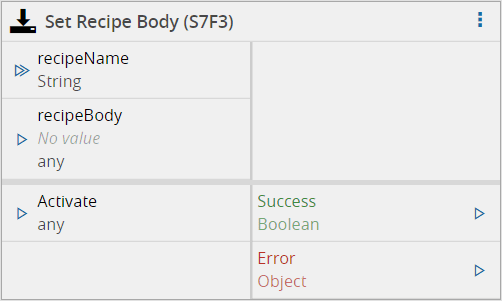When activated, the Set Recipe Body task will send an S7F3 (Set Recipe Body) SECS/GEM message to the equipment.
