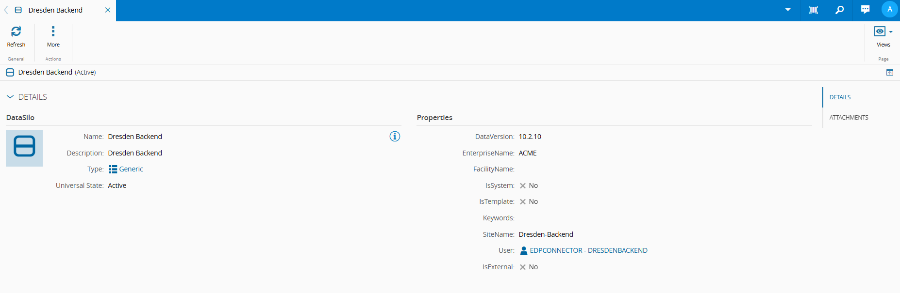 • Details - displays general information on the Data Silo.