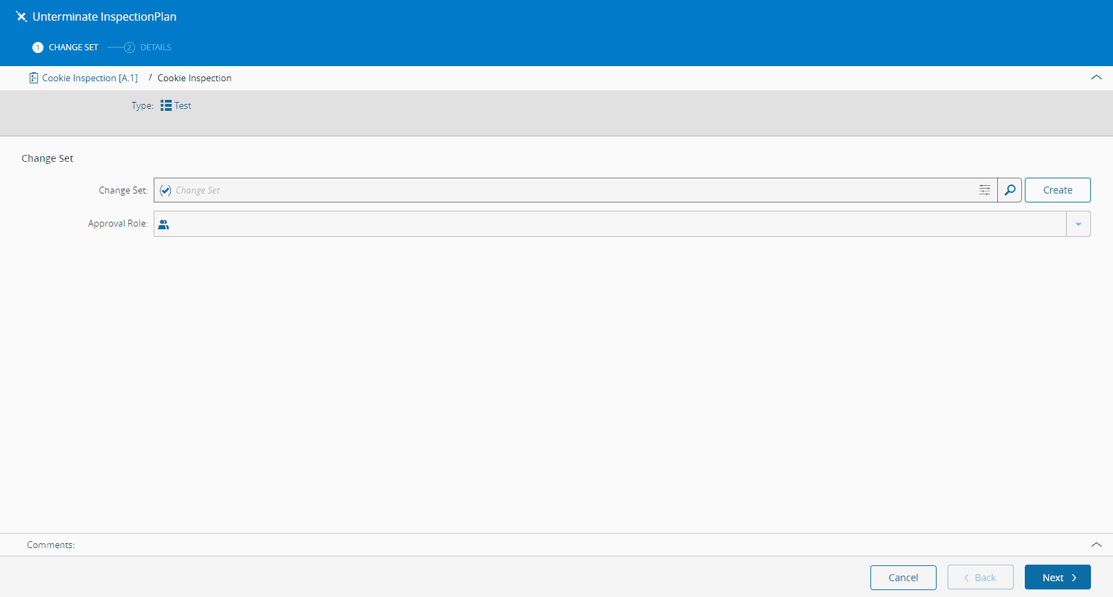 The Unterminate Inspection Plan wizard can be called from the Inspection Plan page within the Business Data Group.