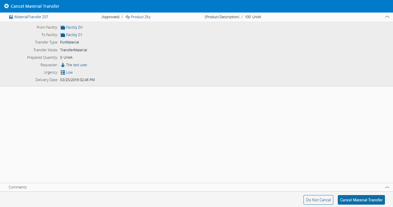 Material Transfer's universal state is Active and its system state is Requested or Approved.