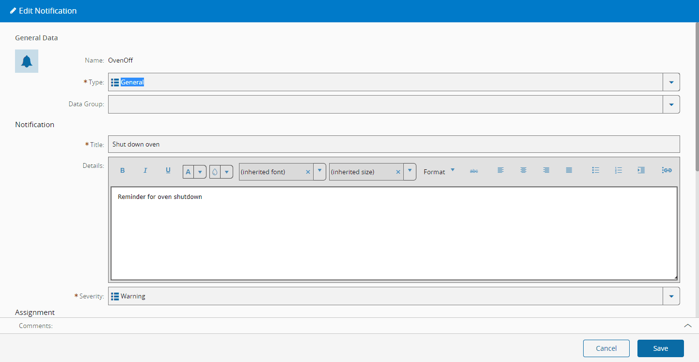 The Edit Notification wizard can be called from the Notification page within the Business Data Group.