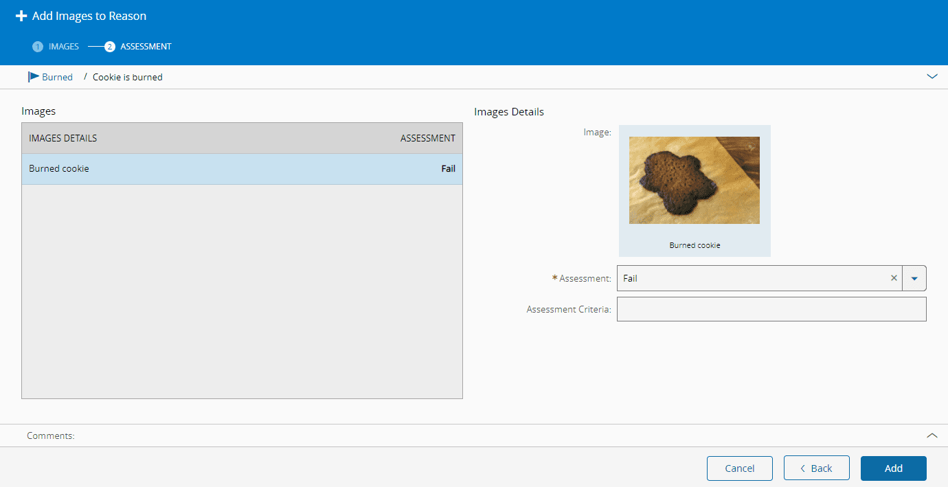 For each of the images selected in the previous step, define an Assessment from the available options: