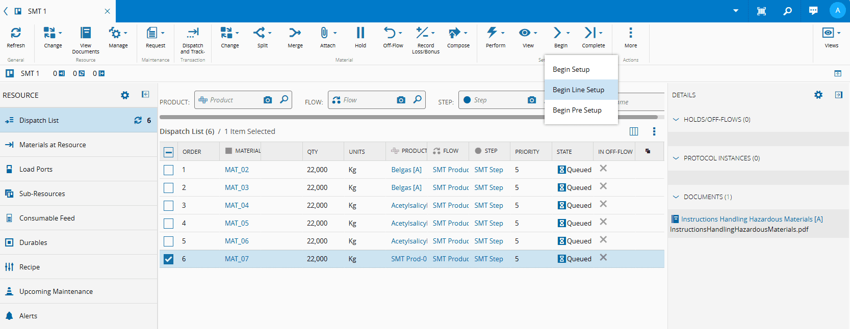 - Select a Resource matching the preconditions with the Setup Begin and Complete Mode for the available Sub-Resource set to Manual Begin and Complete.