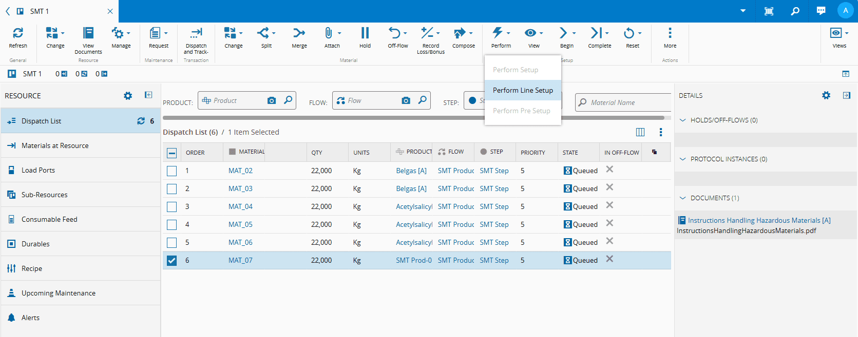 Back in the Resource View, select a Material, and select Perform Line Setup in the main Line Resource:
