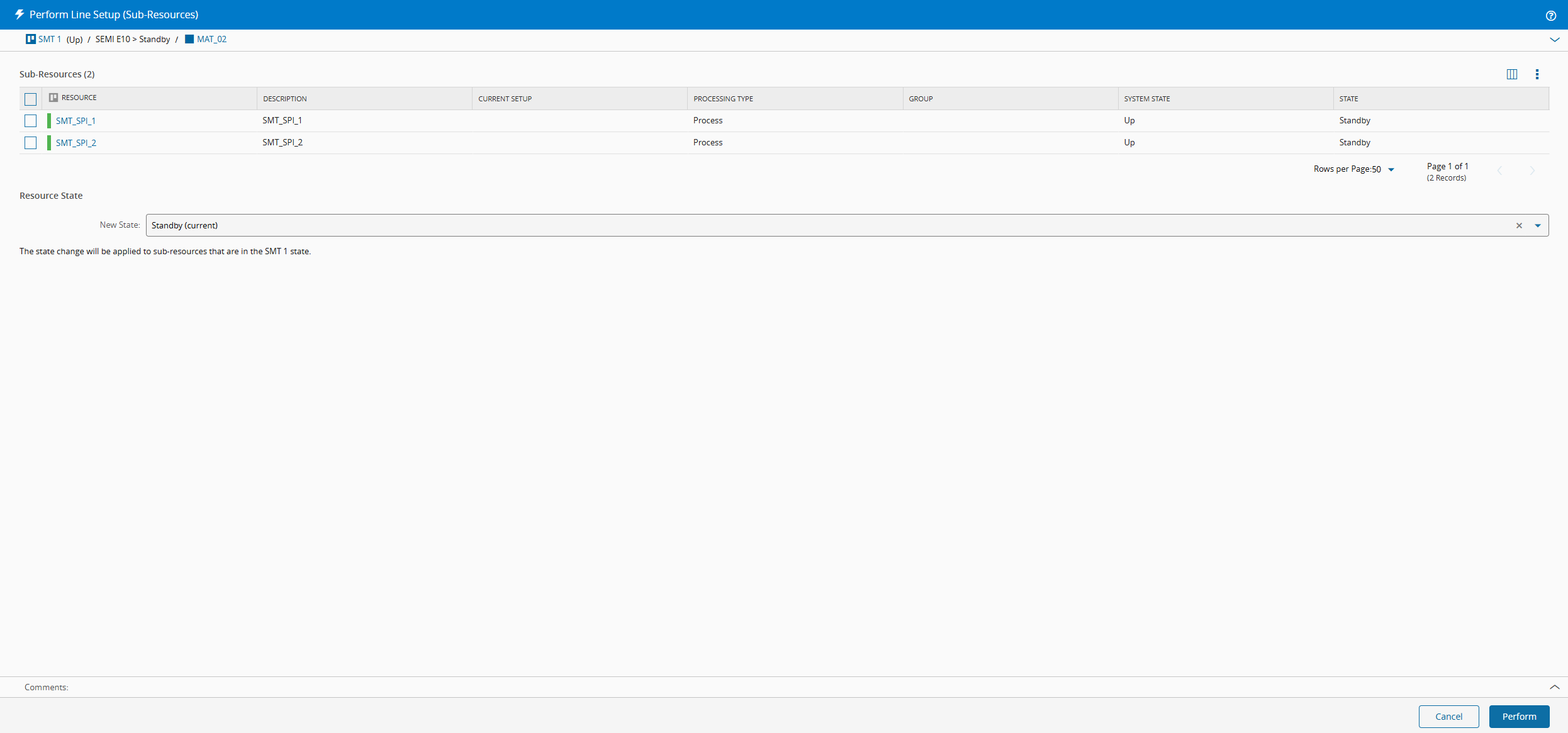 The Perform Line Setup (Sub-Resources) wizard will display the Sub-Resource(s) that are available to perform the line setup for the given Material: