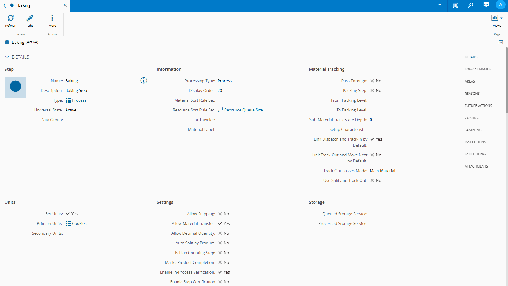 - In-Process Verification - displays the existing Relations between the Step and any In-Process Verification configured in the system.