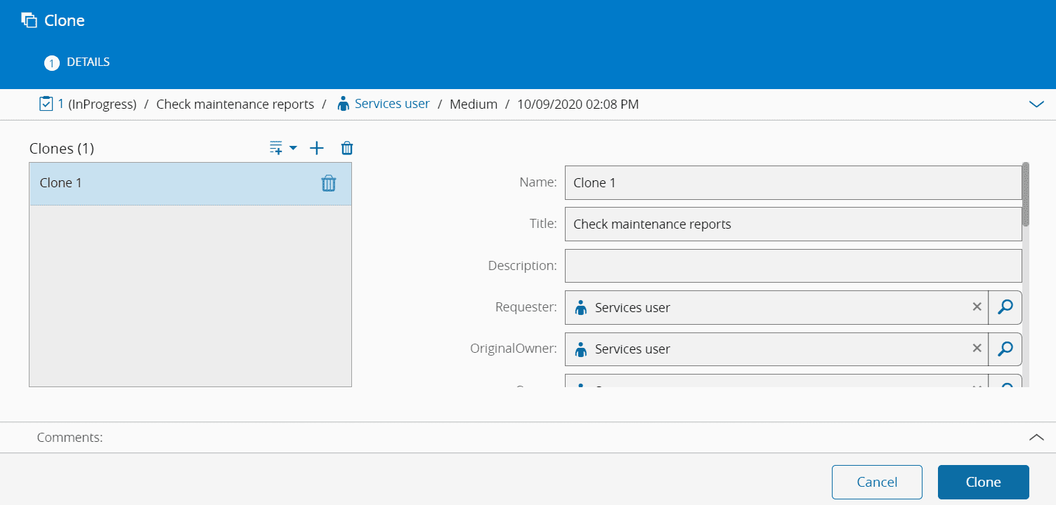 The Clone Task wizard can be called from the Task page within the Business Data Group. The default values will be taken from the current Task to be used as a base for the new object.