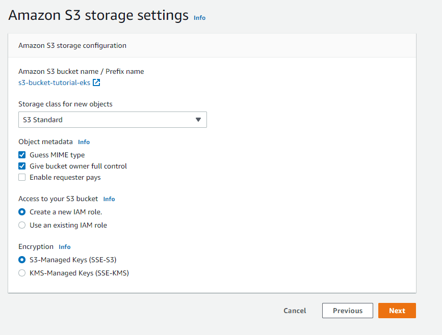 Amazon S3 storage settings