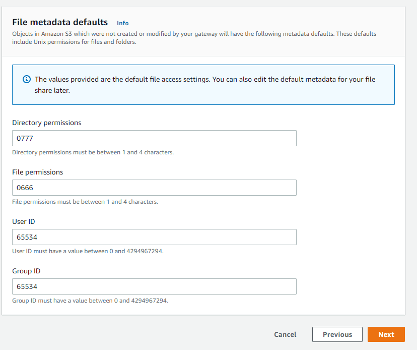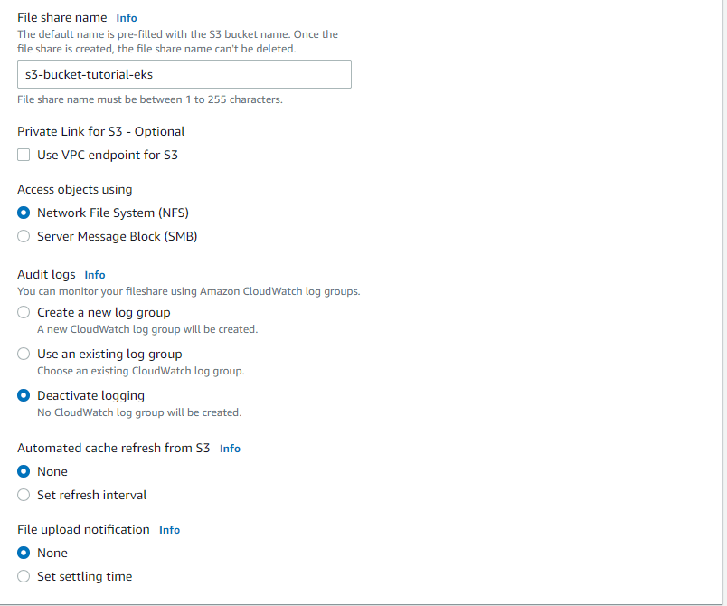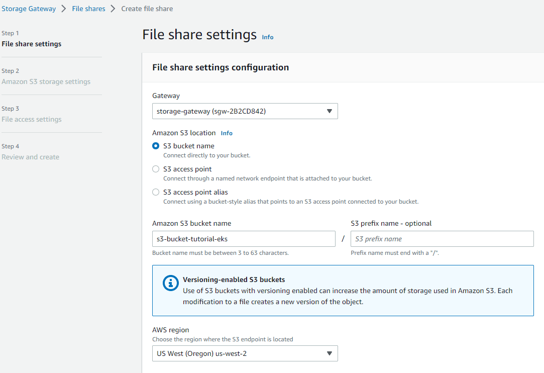 By default, the file share name is prefilled with the S3 bucket name, but it can be changed to a different one.