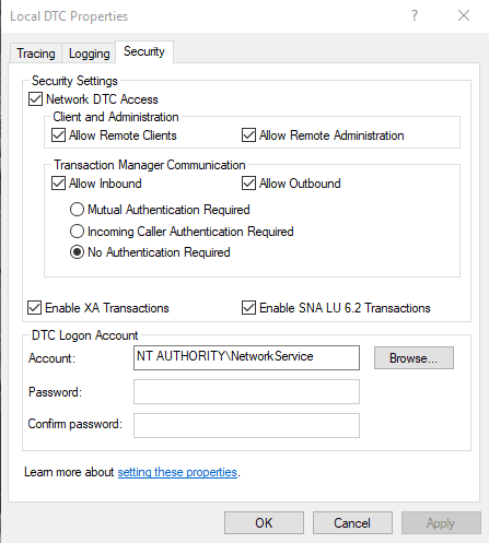 Microsoft Distributed Transaction Coordinator (MS-DTC) Configuration#