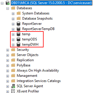 Start by creating a temp, tempODS and tempDWH: