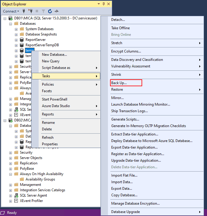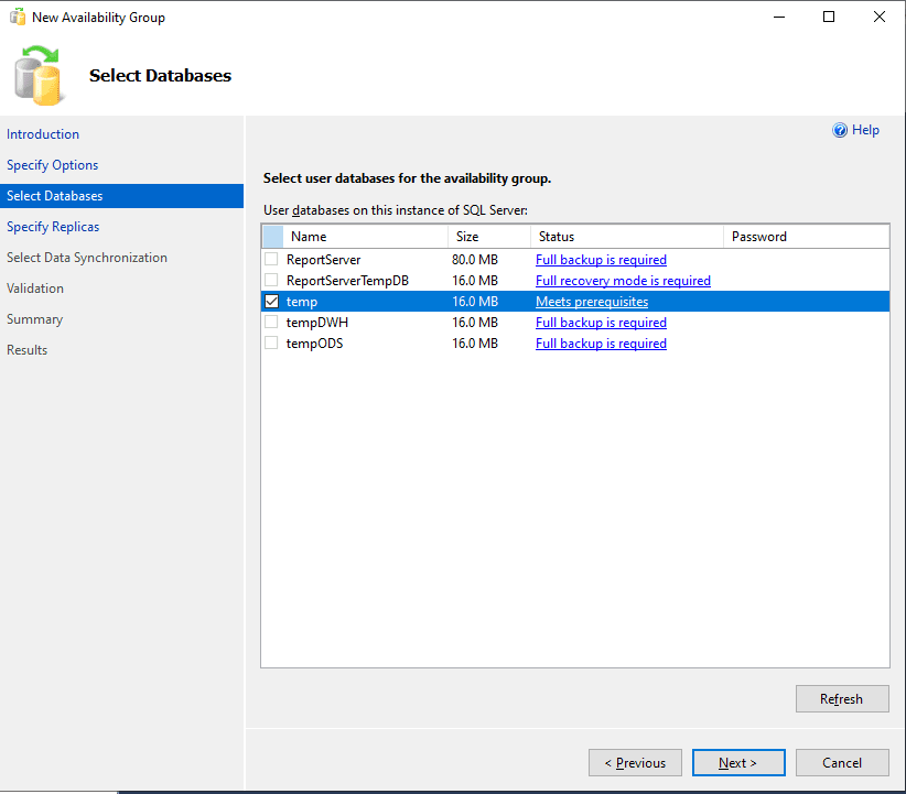 Create a temporary database for each planned Availability Group. If you want to create an Availability Group for Online, ODS and DWH, you need to create 3 temporary databases.