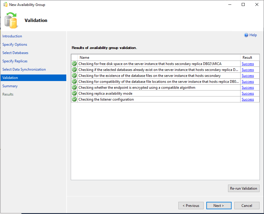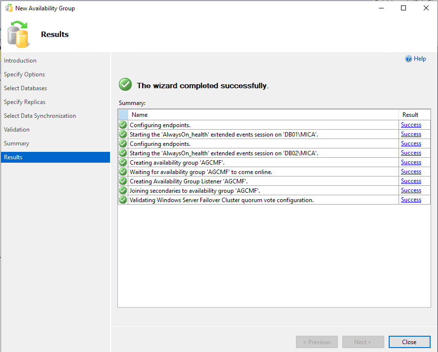 Finally, select Next and wait for the creation of the Availability Group. If no problem is found, the successful result will be clear: