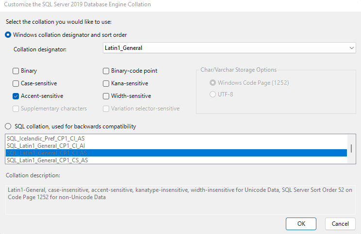 It is necessary to check that the collation is exactly Latin1_General_CI_AS. The deployment software will verify this setting and will fail if it differs.