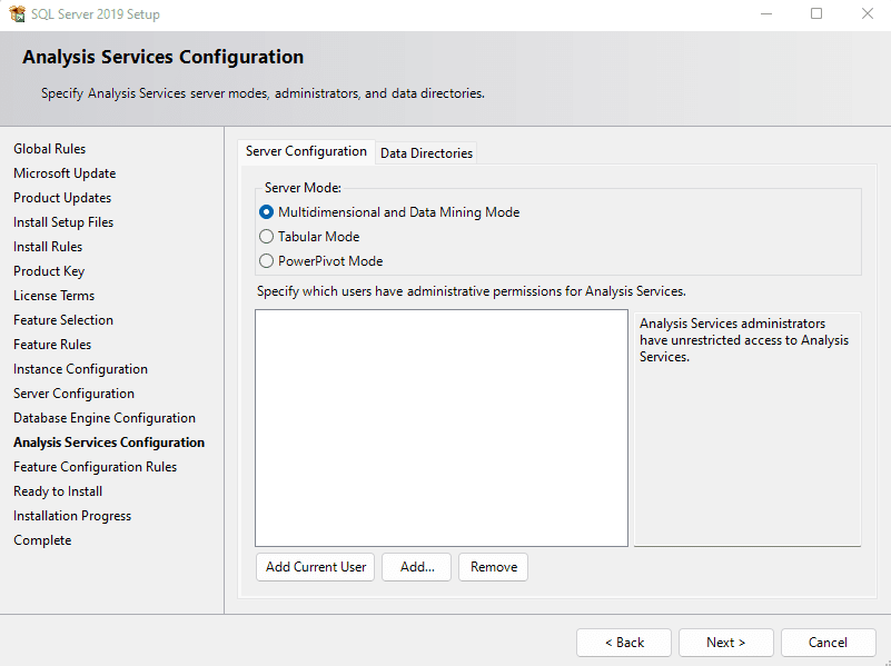 2 Only required if the Analysis Services and SQL Server are installed on different machines. In that case, please make sure to install Microsoft OLE DB Driver for SQL Server on the Analysis Services machine. More information on the installation of Microsoft OLE DB Driver for SQL Server here: https://learn.microsoft.com/en-us/sql/connect/oledb/download-oledb-driver-for-sql-server?view=sql-server-ver16 ⧉.