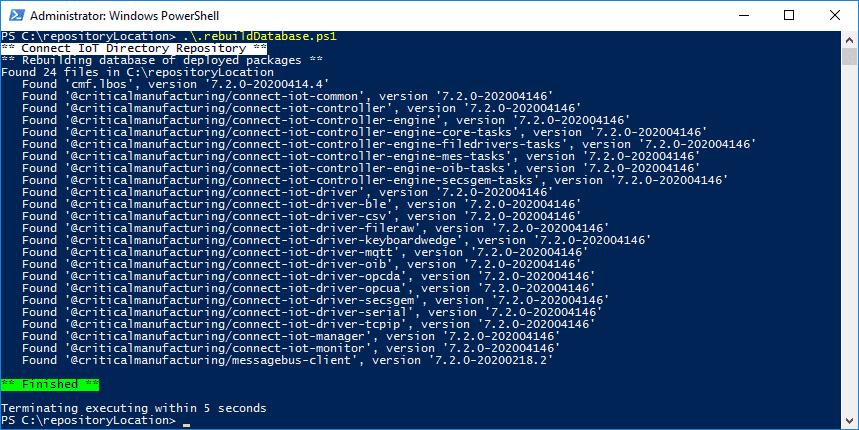 2. Execute the .rebuildDatabase.ps1 PowerShell script that was created during the installation: