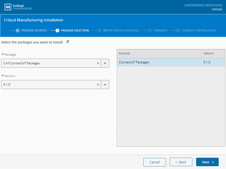 Run the setup wizard and select the package Cmf.ConnectIoT.Packages from the dropdown and select Next.