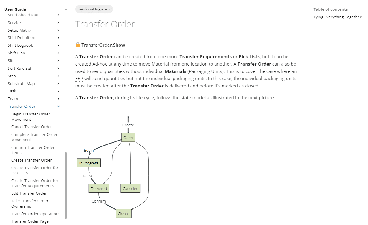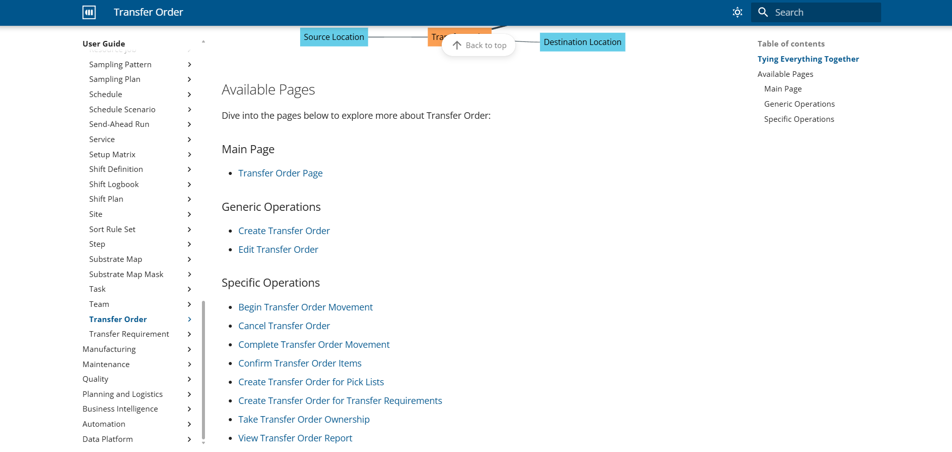 For every Entity (e.g., Transfer Order), you'll have a landing page providing an overview, connections, and dependencies with other MES Entities.