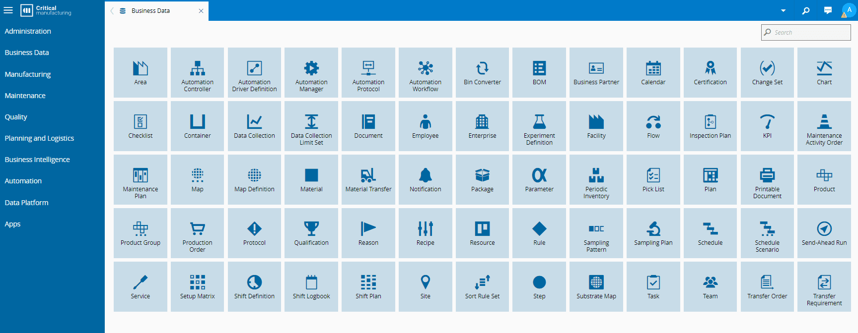 API - Lists the data dictionary that can help extend the functionalities of Critical Manufacturing MES to better suit your purposes and enhance the out-of-the-box capabilities of the system (intended for developers).
