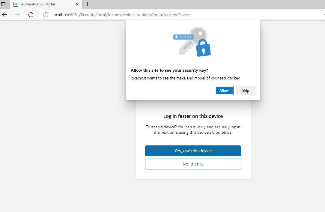 There are two ways to register a device in the SecurityPortal using the WebAuthn strategy: