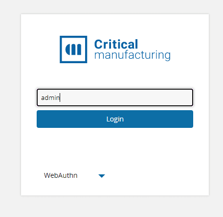 In the WebAuthn login page write the name of the user to login in the input field and press Login: