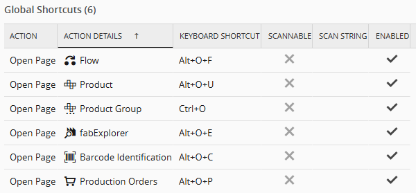 A scan shortcut can be used for any action where Scannable is enabled and a Scan String is defined.