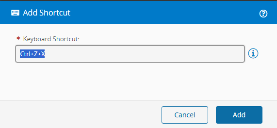 Screenshot showing the Add Shortcut window for entering a keyboard combination.