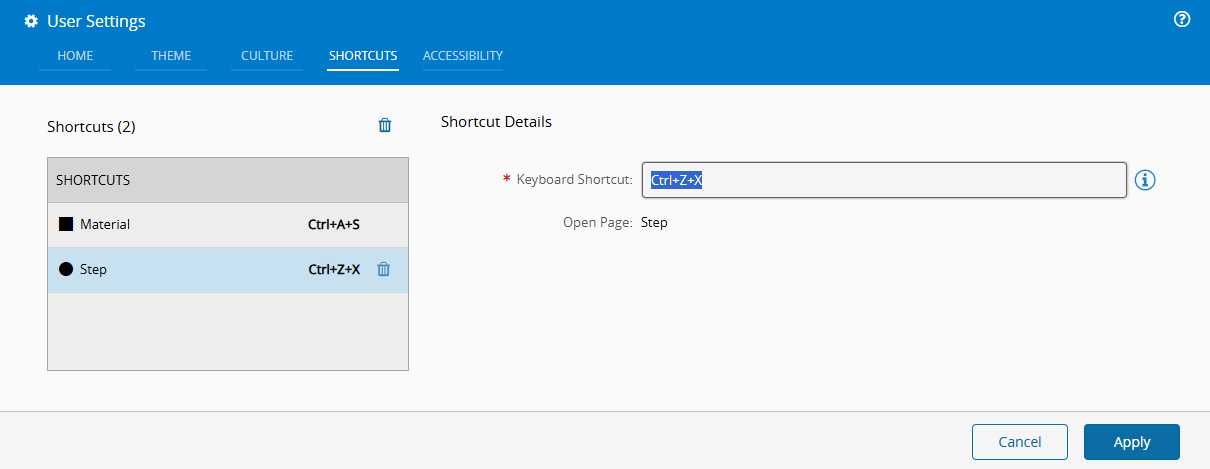 • You can create as many user shortcuts as needed for your workflow.