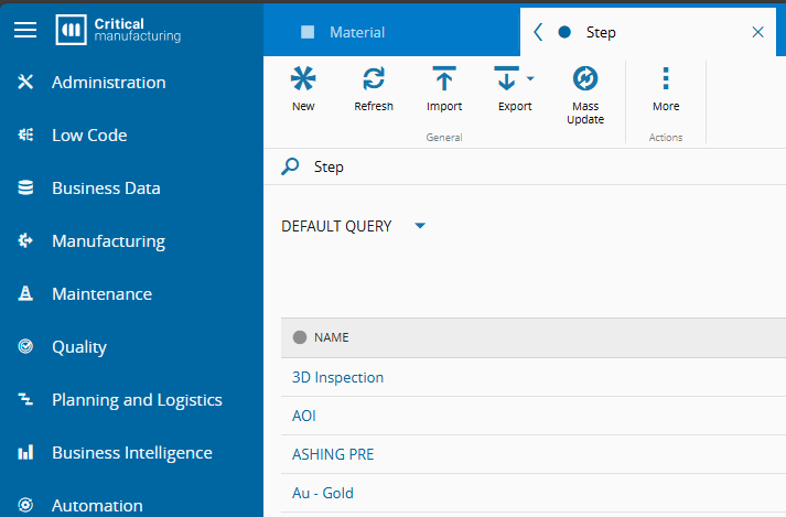 For this scenario, assume that you want quick access to the Material page and the Step page.