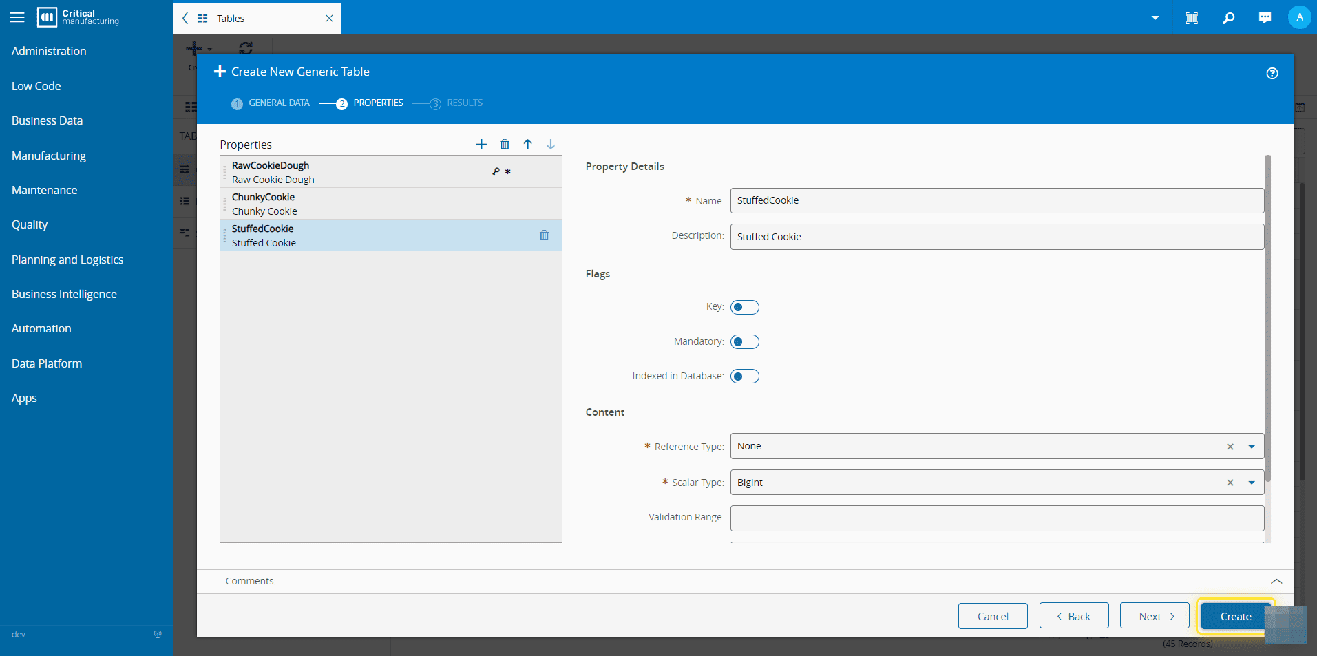 The property name must not contain any whitespaces. Additionally, you must specify one property as the Key by enabling the corresponding toggle button.