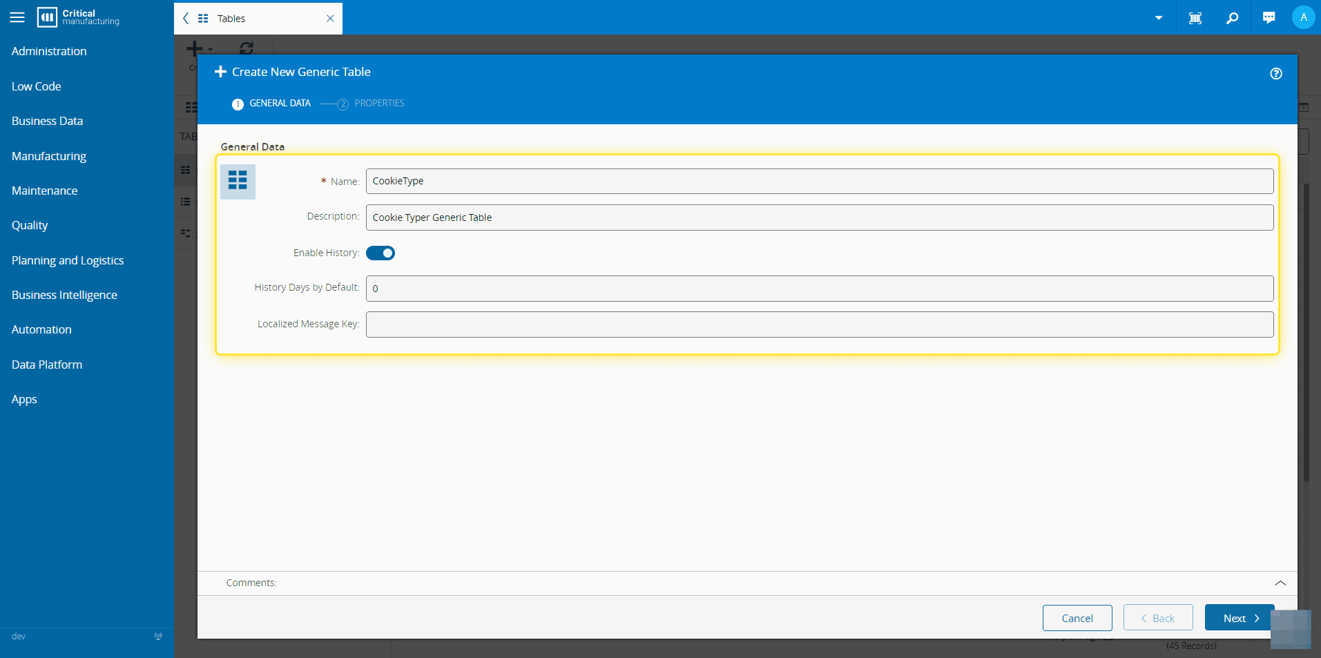 4. Select Generic Table.#
