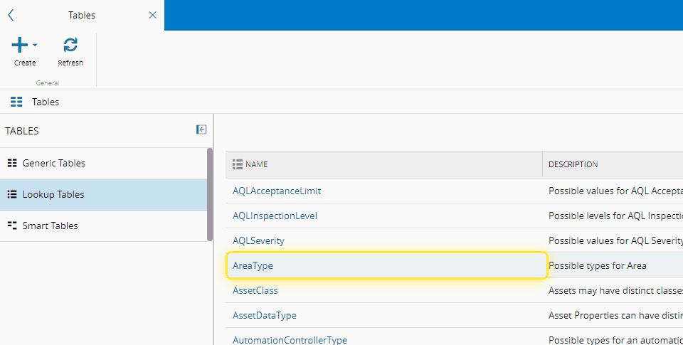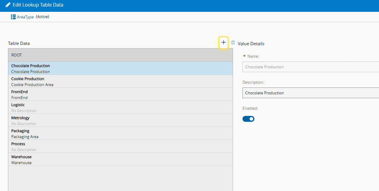 For more information, see Lookup Tables - Critical Manufacturing Documentation Portal ⧉