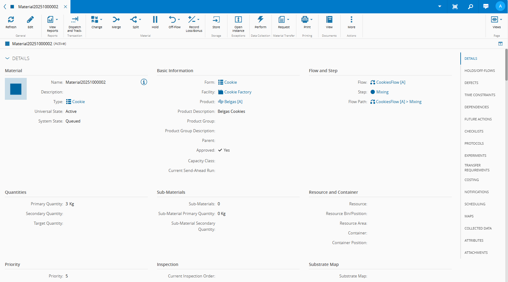 This scenario represents an integration to create a new Material of form Cookies in CM MES.
