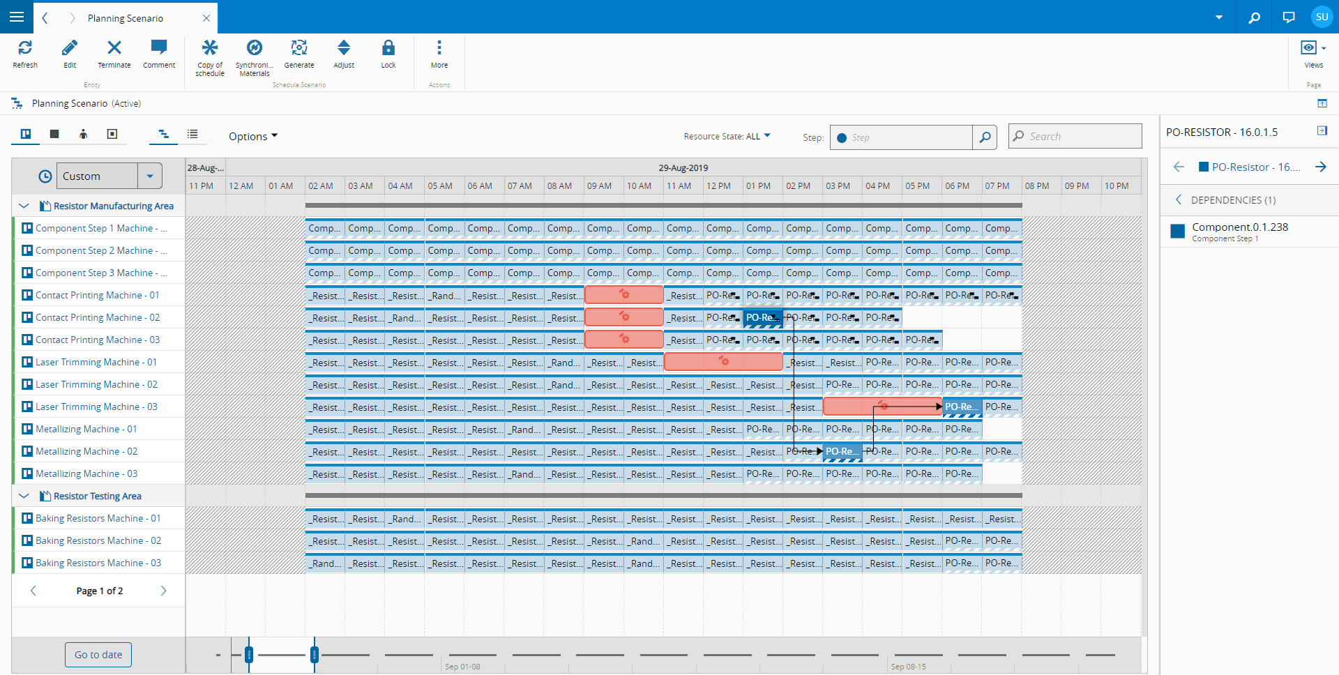 For both these cases, the dependencies associated with each Schedule Scenario Job can be seen in the details bar, by expanding the Dependencies tab. Jobs which have dependencies are also marked with a dependency icon.